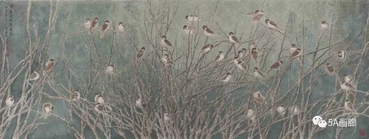 寒雀争空巢(通景) 180cm x 180cm 纸本水墨 2016年